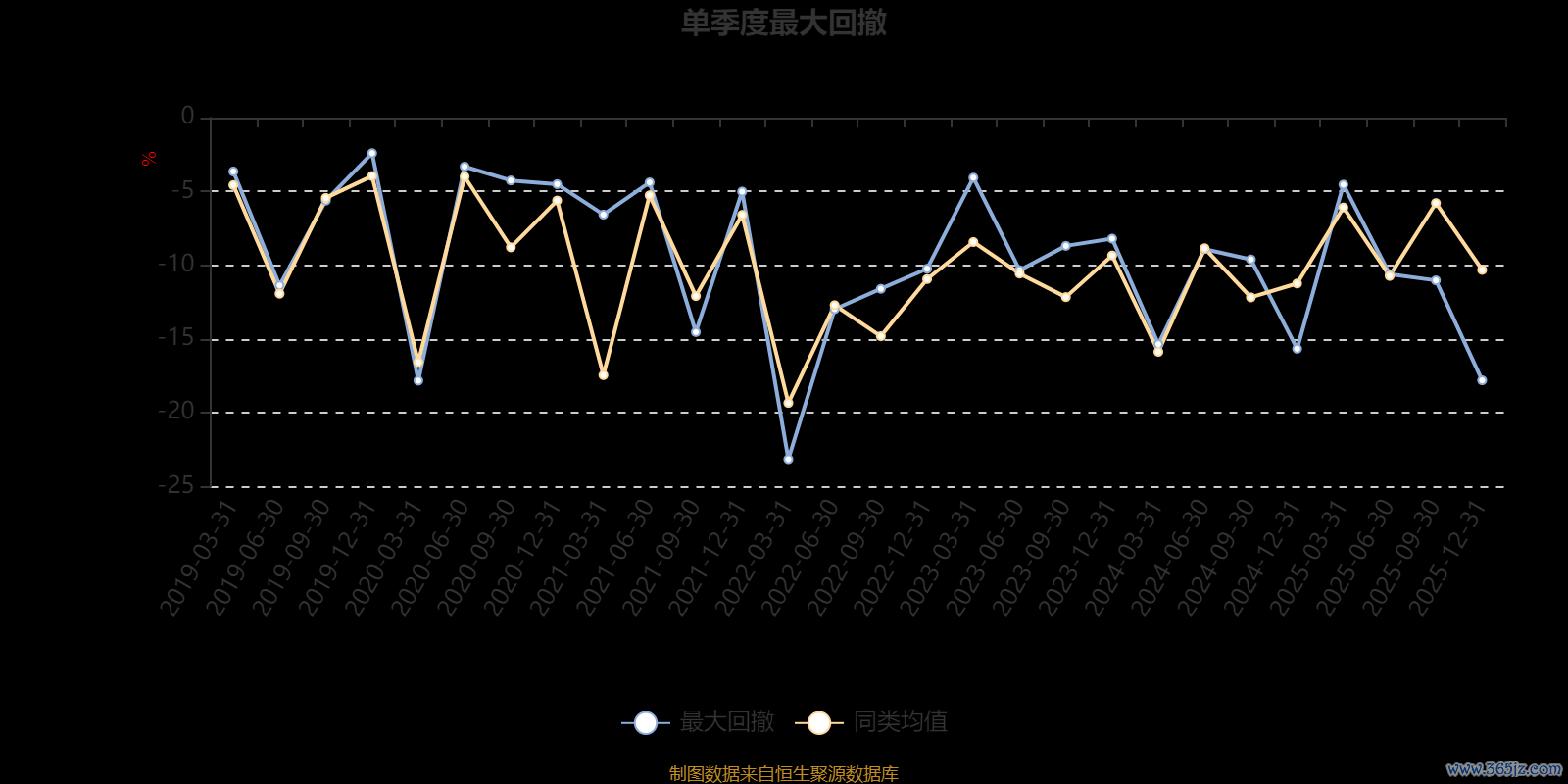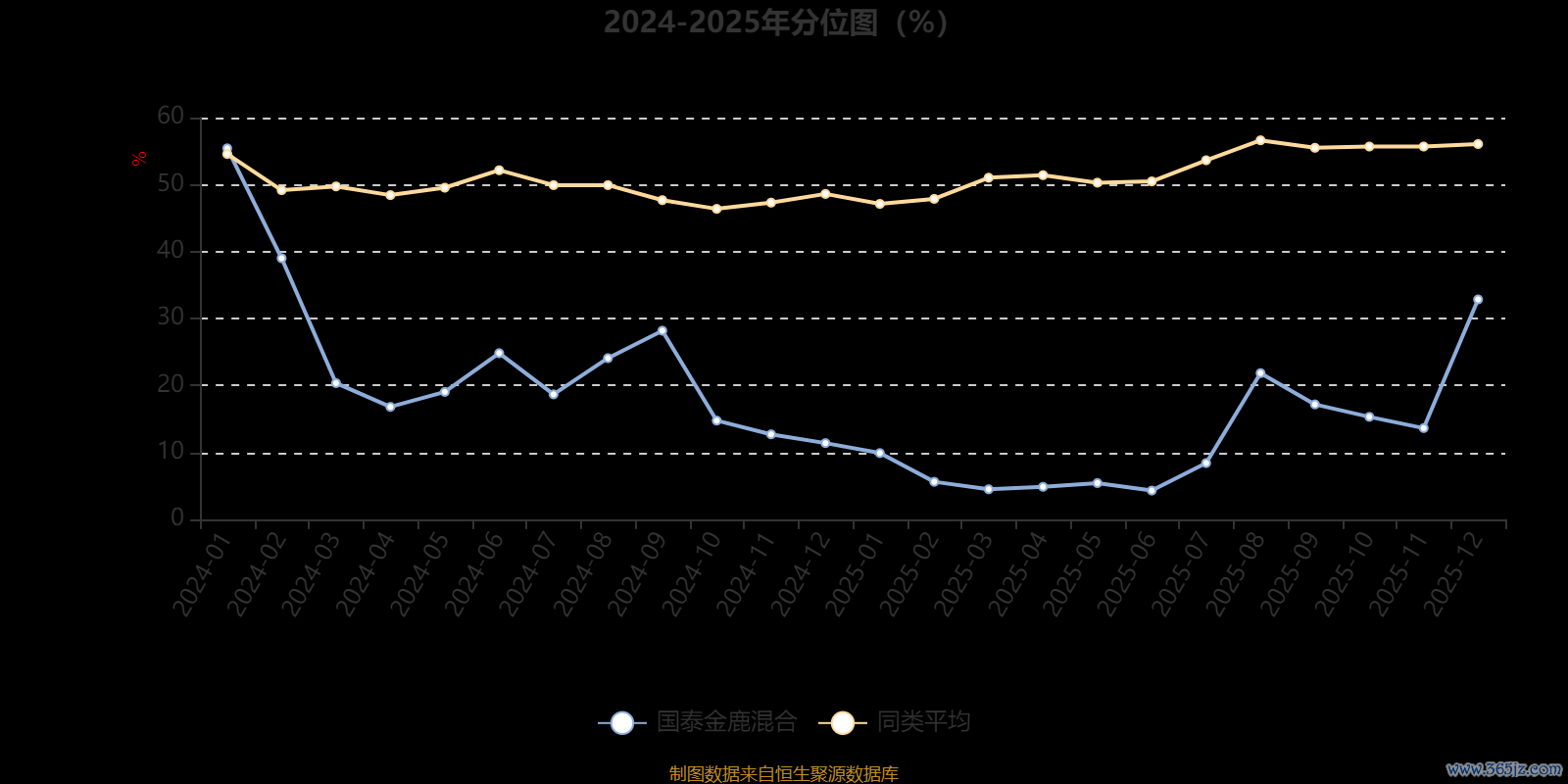 通过所选区间该基金净值增长率分位图,可以观察该基金与同类基金业绩比较情况。图为坐标原点到区间内某时点的净值增长率在同类基金中的分位数。