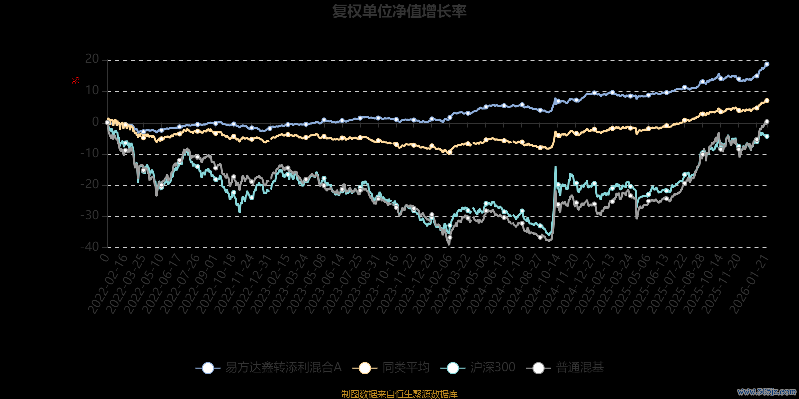 截至1月21日三星证券,易方达鑫转添利混合A近三个月复权单位净值增长率为3.96%,位于同类可比基金120/629;近半年复权单位净值增长率为6.82%,位于同类可比基金159/629;近一年复权单位净值增长率为8.77%,位于同类可比基金258/626;近三年复权单位净值增长率为19.91%,位于同类可比基金86/564。
