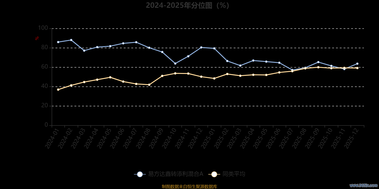 通过所选区间该基金净值增长率分位图,可以观察该基金与同类基金业绩比较情况。图为坐标原点到区间内某时点的净值增长率在同类基金中的分位数。