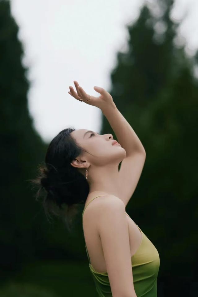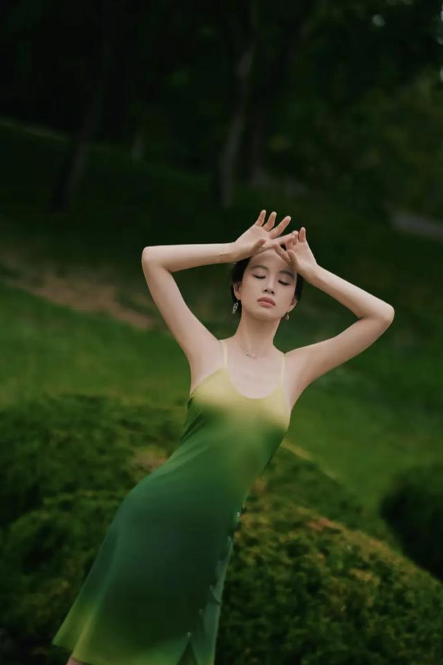 李梦穿着绿色的裙装行走在大自然中,她这一抹绿色是整个大自然中最为亮眼的存在。再加上她婀娜多姿的身影,让我们看到了一个不一样的李梦,她的美与她的气质相融合,成就了这一组美丽的写真。