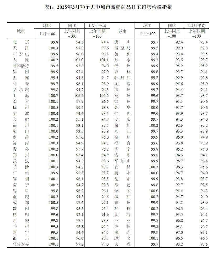 ——国家统计局城市司首席统计师王中华解读2025年3月份恒牛网商品住宅销售价格变动情况统计数据